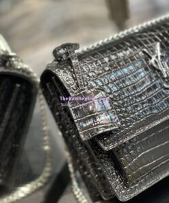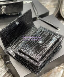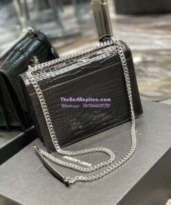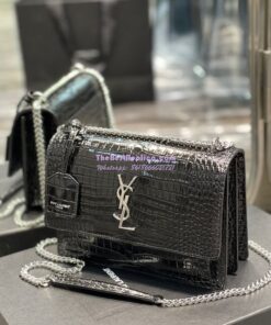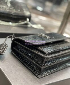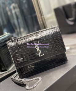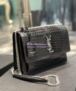 Replica YSL Saint Laurent Medium Sunset Monogram black crocodile embossed bag