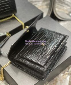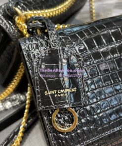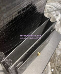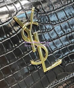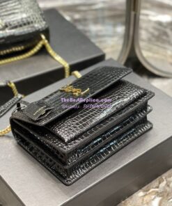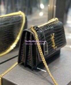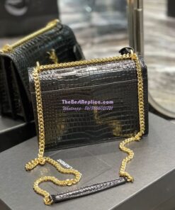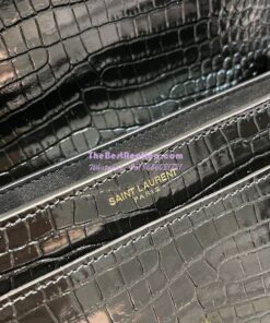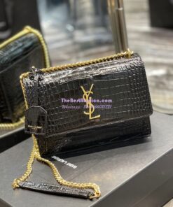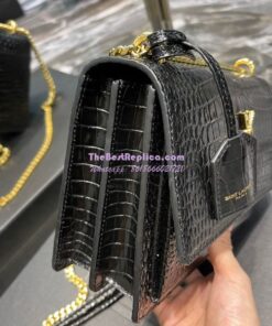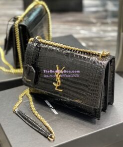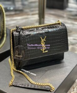 Replica YSL Saint Laurent Medium Sunset Monogram Crocodile embossed bag in Black w Gold Hardware