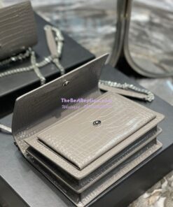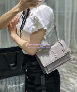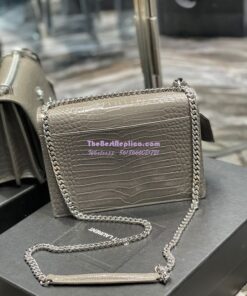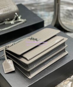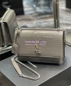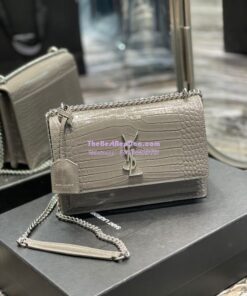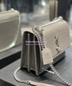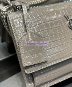 Replica YSL Saint Laurent Medium Sunset Monogram grey crocodile embossed bag
