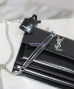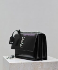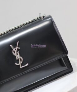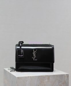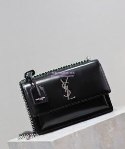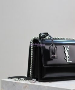 Replica YSL Saint Laurent Medium Sunset Satchel In Patent Leather 634723 Black