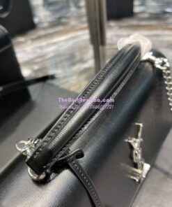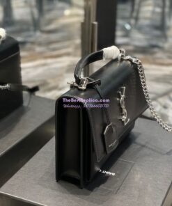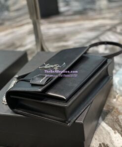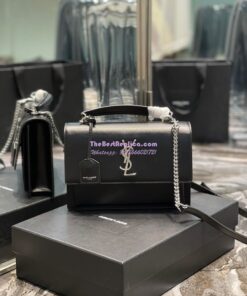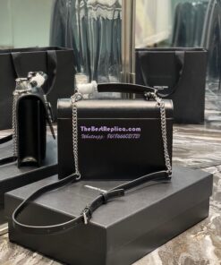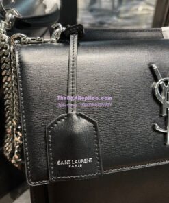 Replica YSL Saint Laurent Medium Sunset Satchel In Smooth Leather 634723 Black with Silver Hardware
