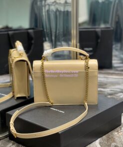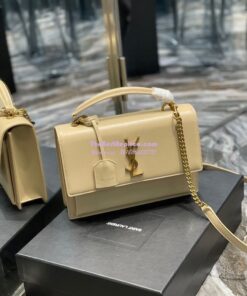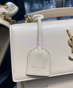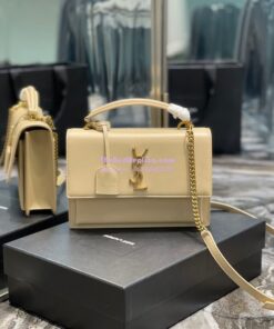 Replica YSL Saint Laurent Medium Sunset Satchel In Smooth Leather 634723 Light Beige
