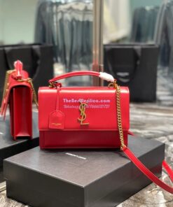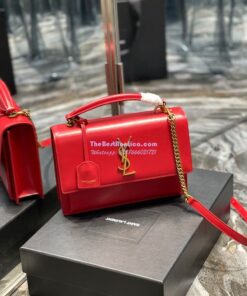 Replica YSL Saint Laurent Medium Sunset Satchel In Smooth Leather 634723 Red