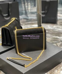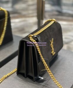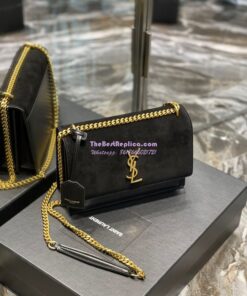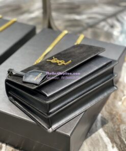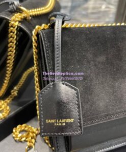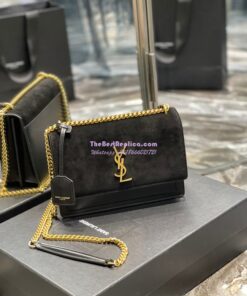 Replica YSL Saint Laurent Medium Sunset Satchel In Suede and Smooth Leather 442906 Black