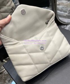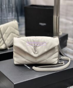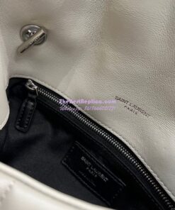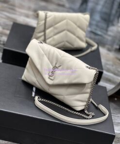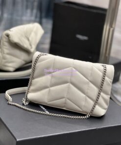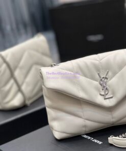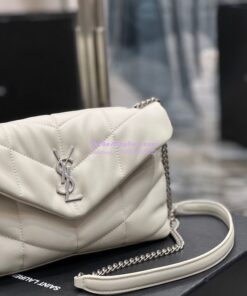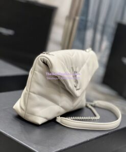 Replica YSL Saint Laurent Mini Loulou Puffer Toy Bag In Quilted Lambskin Blanc in Silver Hardware