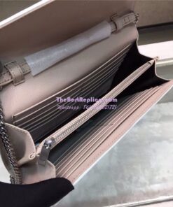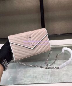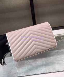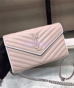 Replica YSL Saint Laurent Monogram Chain Wallet Grain De Poudre Rose in Rose Hardware