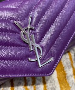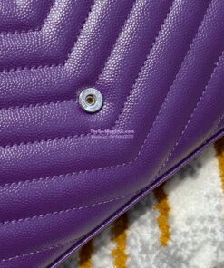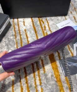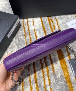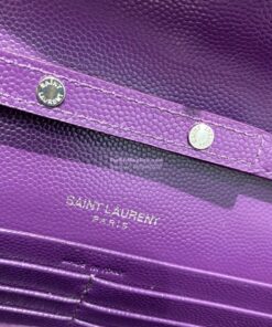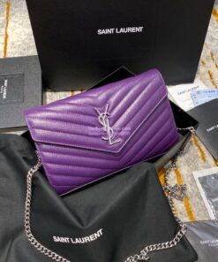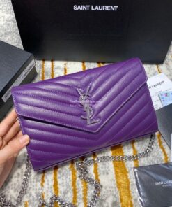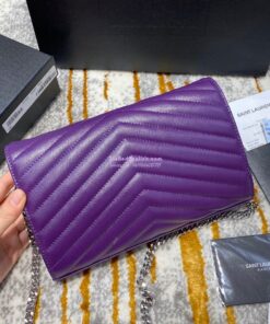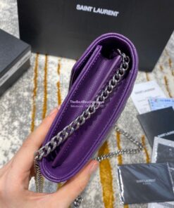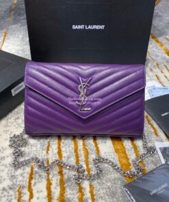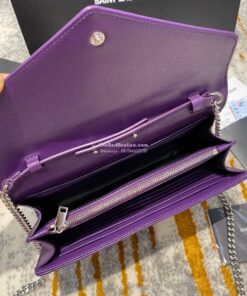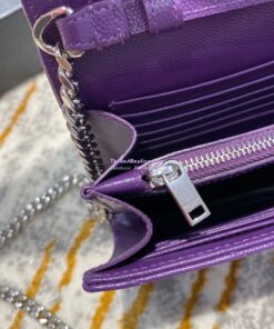 Replica YSL Saint Laurent Monogram Chain Wallet Grain De Poudre Textured Matelasse Leather Purple