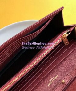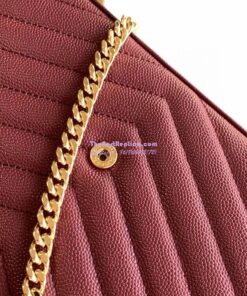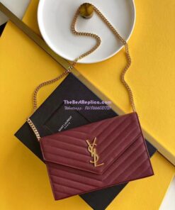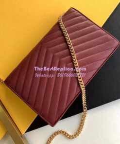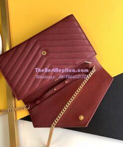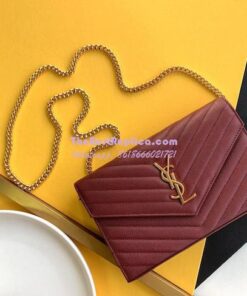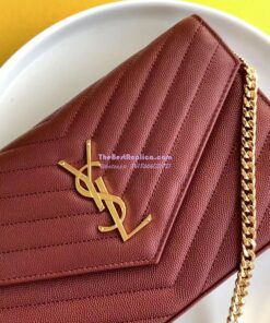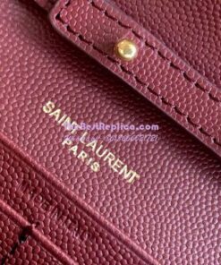 Replica YSL Saint Laurent Monogram Chain Wallet Grain De Poudre Textured Matelasse Leather Wine