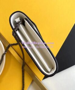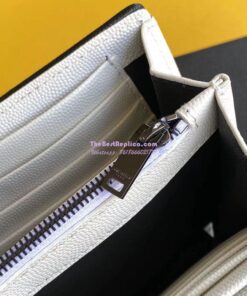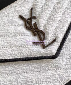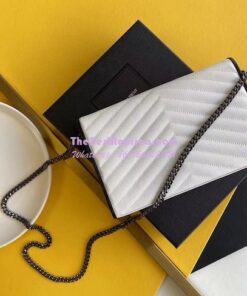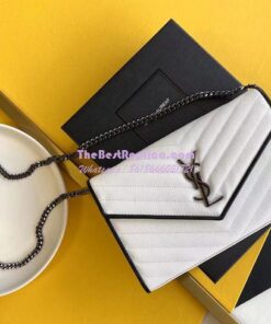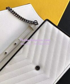 Replica YSL Saint Laurent Monogram Chain Wallet Grain De Poudre White in Black Hardware