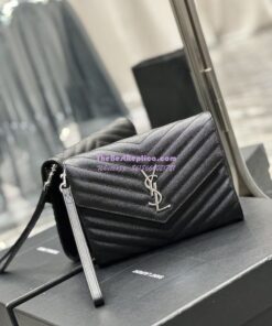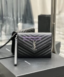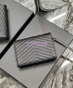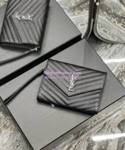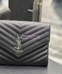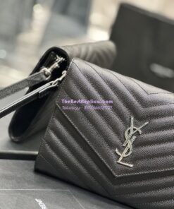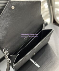 Replica YSL Saint Laurent Monogram Clutch in Quilted Grain De Poudre Embossed Leather 617662 Black Silver Hardware