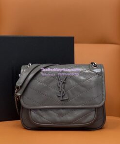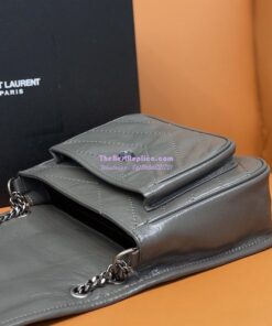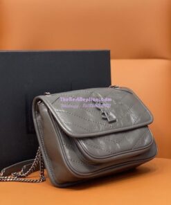 Replica YSL Saint Laurent Niki Baby In Crinkled Vintage Leather 533037 Storm Grey