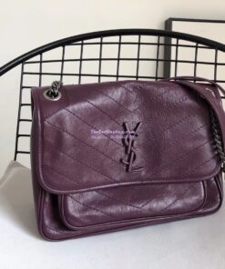 Replica YSL Saint Laurent Niki Chain Bag In Vintage Crinkled And Quilted Leather 498894 Prunia