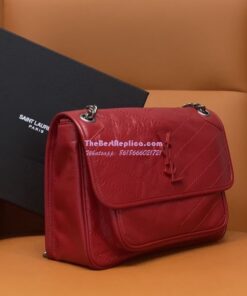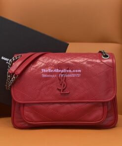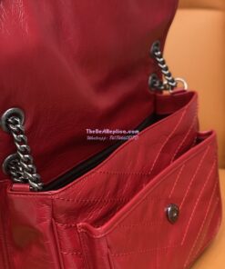 Replica YSL Saint Laurent Niki Chain Bag In Vintage Crinkled And Red Quilted Leather 498894