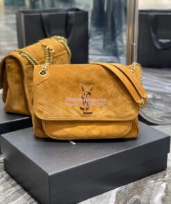 Replica YSL Saint Laurent Niki Medium In Quilted Suede And Smooth Leather 6331581 Cork