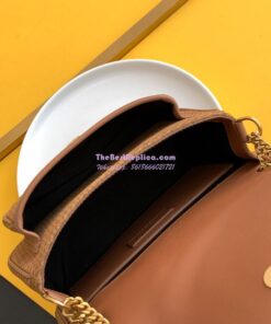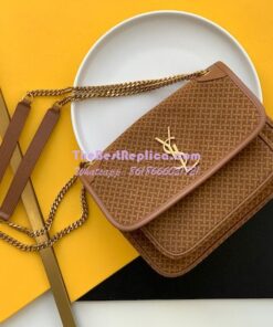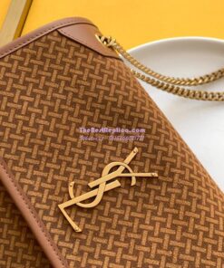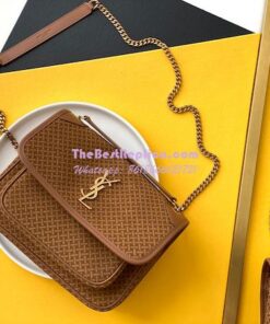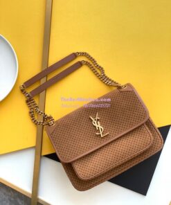 Replica YSL Saint Laurent Niki Woven Print Suede Small Medium Shoulder Bag 633158 Brun