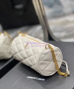 Replica YSL Saint Laurent Sade Mini Tube Bag In Quilted Lambskin 699703 White