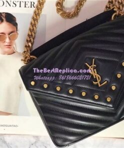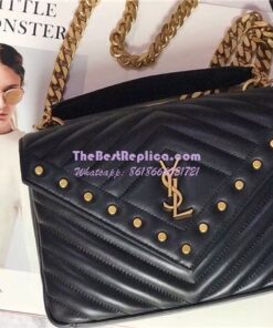 Replica Ysl Saint Laurent Top Handle Medium College Black Bag With gold Metal Chain